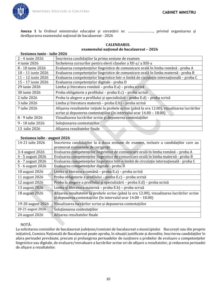 ORDIN privind organizarea și desfășurarea examenului național de bacalaureat – 2026